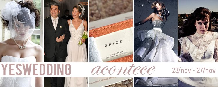 Como nunca vai deixar de ser, a estrela de todo casamento é a noiva, e todos os olhares estão voltados para seu vestido. Por isso o YES WEDDING prestigia os melhores e mais lindos modelos: estão no site esta semana os super modernos da Harper’s Bazaar, um modelo vintage cheio de bossa, outro que deixa o destaque para o arranjo da cabeça, e uma criação irretocável de Sheila Kracochansky. Para completar, um mimo para os convidados que viajam especialmente para prestigiar os amigos na hora do sim. Eles merecem!sexta-feira, 27 de novembro de 2009